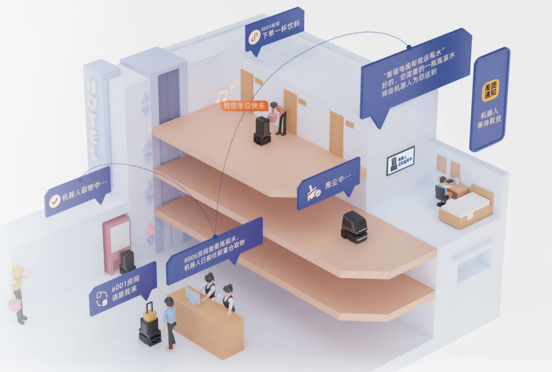 云迹科技自研的AI智能体使用系统HDOS,做为“聪慧大脑”可从动分派使命、各办事环节,达到机械人自动理解场景、矫捷协做的结果。例如,当酒店接入HDOS系统后,酒店房间设置的饮料柜不再需工挨个查看,而是及时看到货物余量,客人只需正在房间扫码下单,机械人就可自从送货。