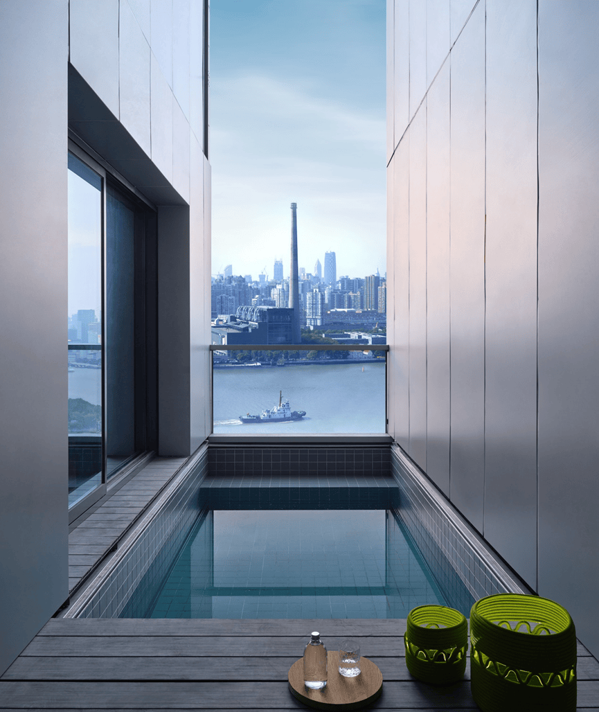 但此次正在大宁项目,正在南侧的1#和2#我们又见到了正在市区豪宅中都极为少见的私人泳池,回首近几年的上海豪宅成长史,能有私人泳池设置装备摆设的目前也就多年前的世贸滨江花圃和24年的热盘保利世博天悦。